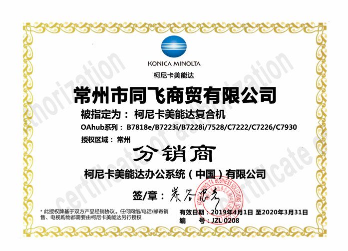 公司取得了日本京瓷復(fù)印機、打印機,映美針式打印機、天威耗材、安興紙業(yè)等眾多知名品牌常州地區(qū)代理權(quán)。